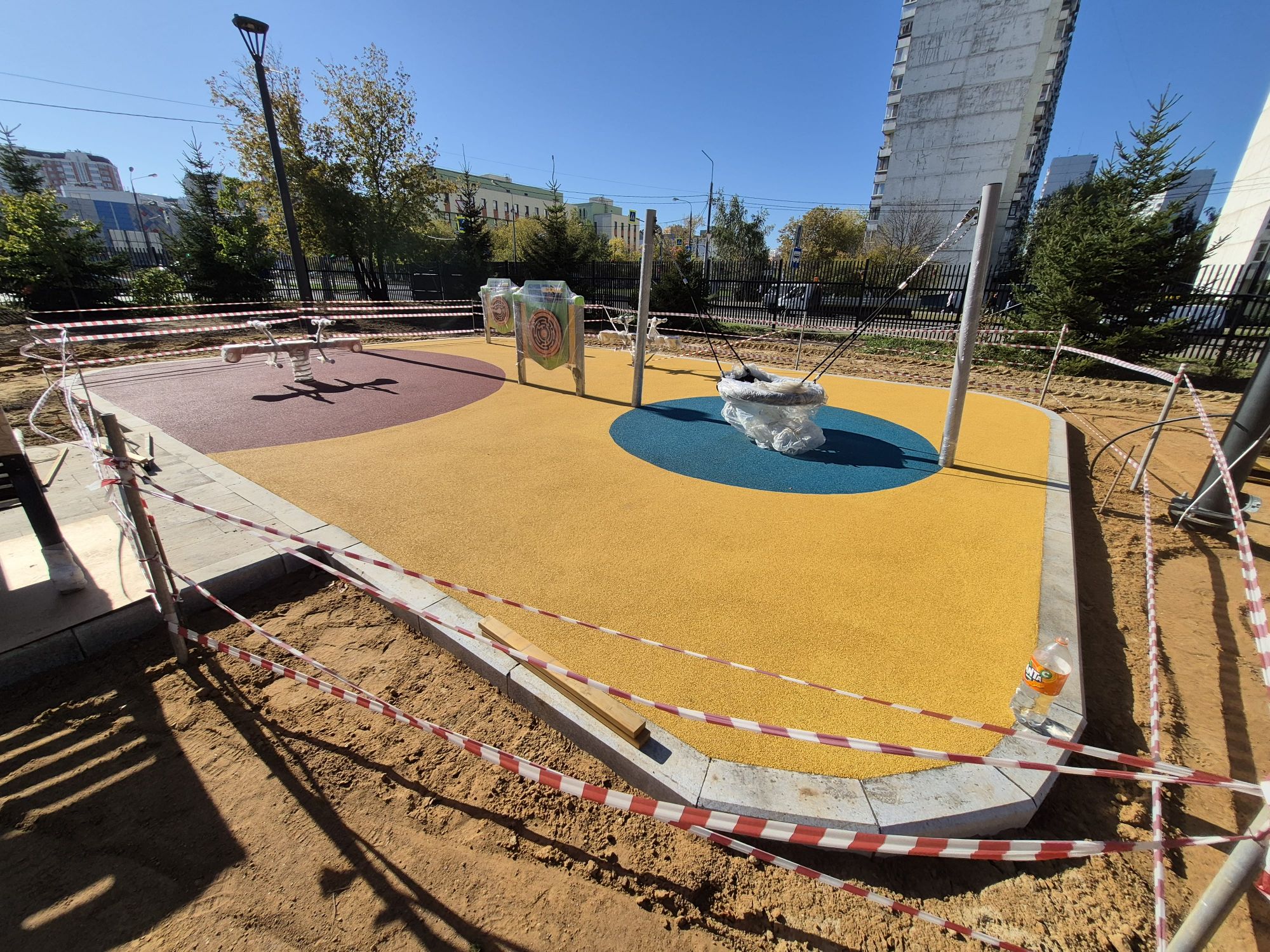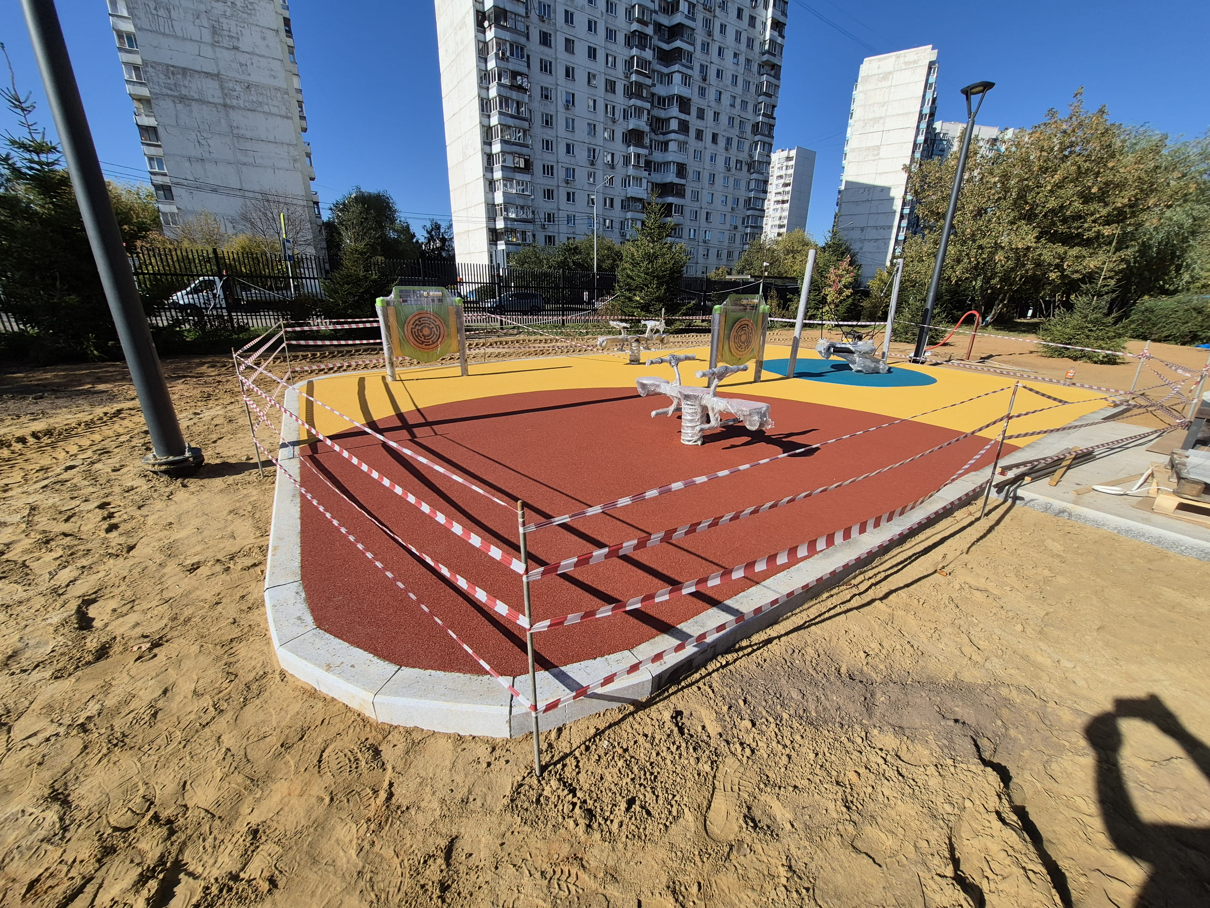 В ДГП № 132, филиал № 3, г.Москва, ул. Авиаторов, д.22 была выполнена укладка двухслойного бесшовного резинового покрытия на детской площадки. Из-за интенсивных нагрузок, на таких площадках были установлены технологические стандарты, которые определяют толщину, состав и этапы укладки покрытия. Главным критерием является обеспечение максимальной безопасности от травм, что достигается только при строгом соблюдении ГОСТа. Данная спортивная площадка была оборудована в соответствии со всеми нормами и успешно прошла испытания, подтверждающие ее готовность к использованию.